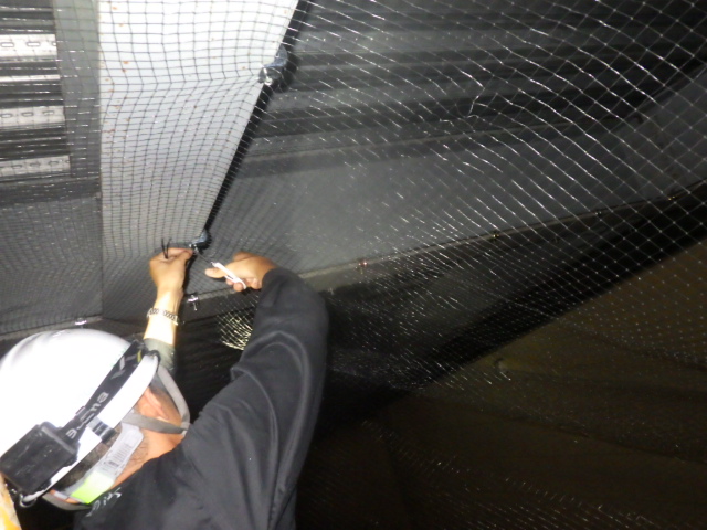 防鳥ネットの設置や巣に戻らせない対策を行いました。